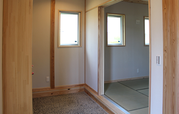 たっぷりの光と風が心地いい2階リビングの家が完成しました。リビングを2階にすることで外部からの視線をカットしてプライバシーを確保し、開放感を味わいながらゆったり過ごすことができます。屋根の形状を生かして天井を高くし、開放感だけでなく室内空間の有効活用も実現。リビングから繋がる便利なL字型ウッドデッキもあり、テーブルや椅子を配置してプライベートなカフェスペースとしても早変わり。1階のランドリールームでは「洗濯~干す~片付ける」が一室で行えて、洗濯家事の効率がアップすること間違いなしです。